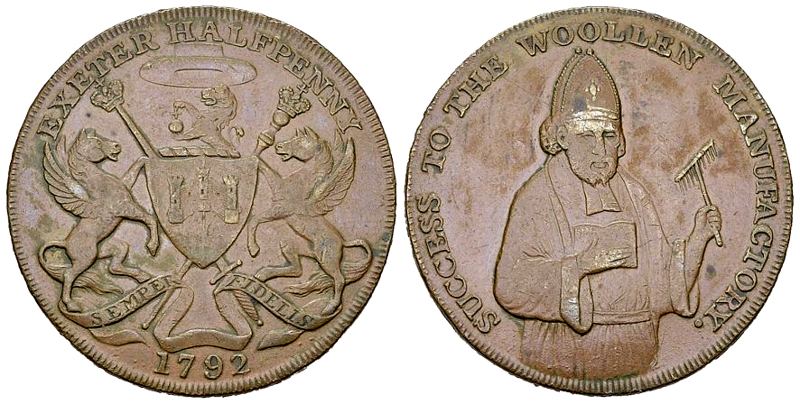 Great Britain. Devonshire, Exeter. CU Halfpenny Token 1792 (12.38 g), D&H 2.