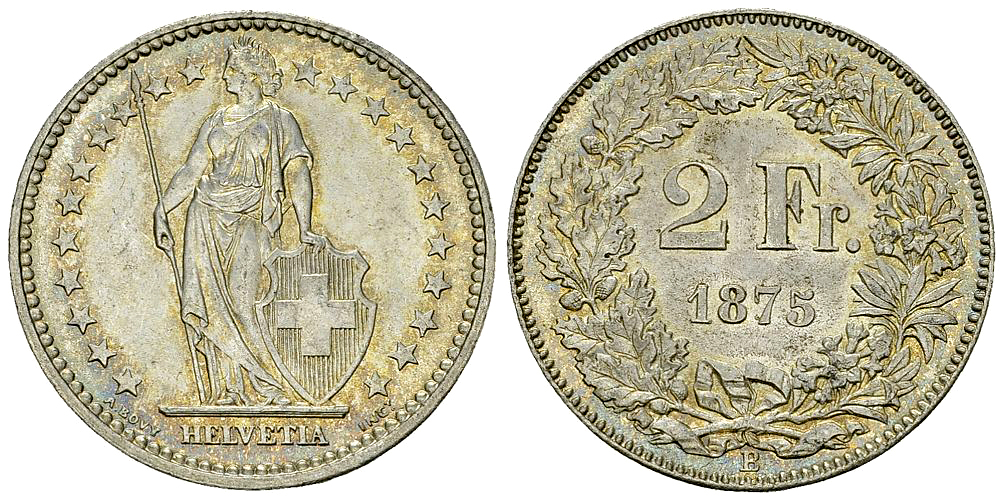 . Schweiz, AR 2 Franken 1875 B