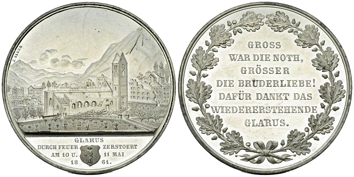 50-jährigen Gedenken des grossen Brands von Glarus. Beschriftetes