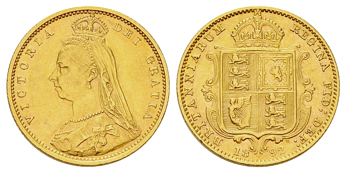 United Kingdom. Victoria AV Half Sovereign 1892.