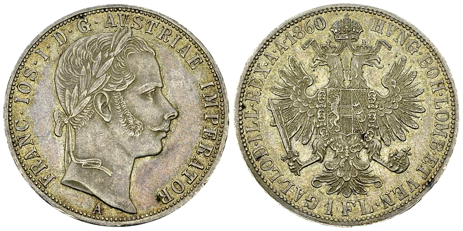Lot 79. Franz Joseph I, AR 1 Florin 1860 A, Wien