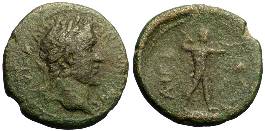 Antoninus Pius (138-161 AD). AE 2 Assaria (27 mm, 13.91 g), Aegium, Achaia. Obv. AVTOKPATWP ANTWNЄINOC, laureate head right. Rev. AIΓIЄΩN, nude Boy Zeus advancing right on low base, brandishing thunderbolt and holding eagle. Kroll 13.4 (this coin). RPC online temp. 4611.