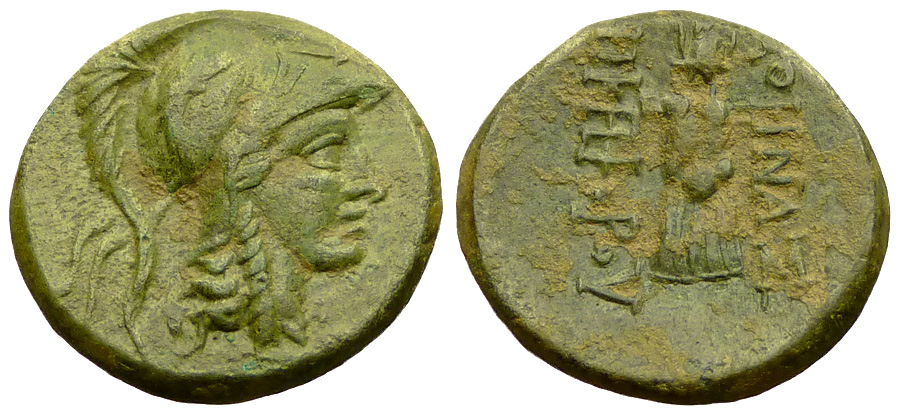 Lot 24. Pergamon AE 20, Head of Athena / tropaion